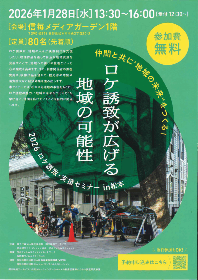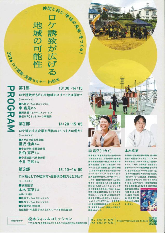 今回のセミナーでは、松本市や先進地の事例をもとに、ロケ誘致の魅力や地域の未来をつくる力について学び合います!