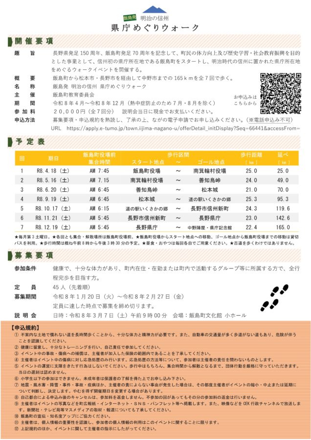 ※申込条件:健康で十分な体力があり、町内在住・在勤又は町内で活動するグループ等に所属する方で、全行程完歩を目指す方。