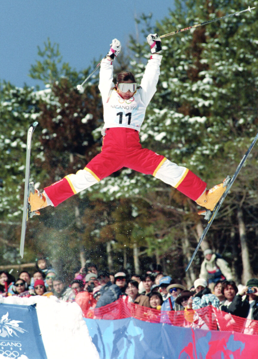 写真:1998年の長野オリンピック、フリースタイルスキー女子モーグルで金メダルを獲得した里谷多英選手